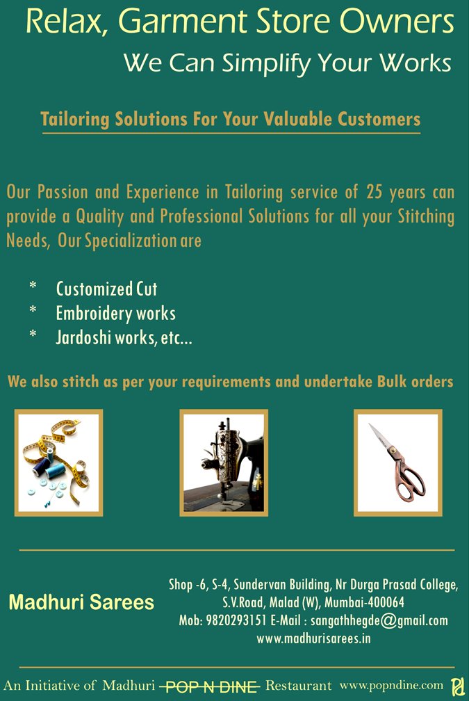 Our Passions & Experience in Tailoring Service for 25 yrs can provide an Quality & Professional Slolutions for all Your Stitching Needs.